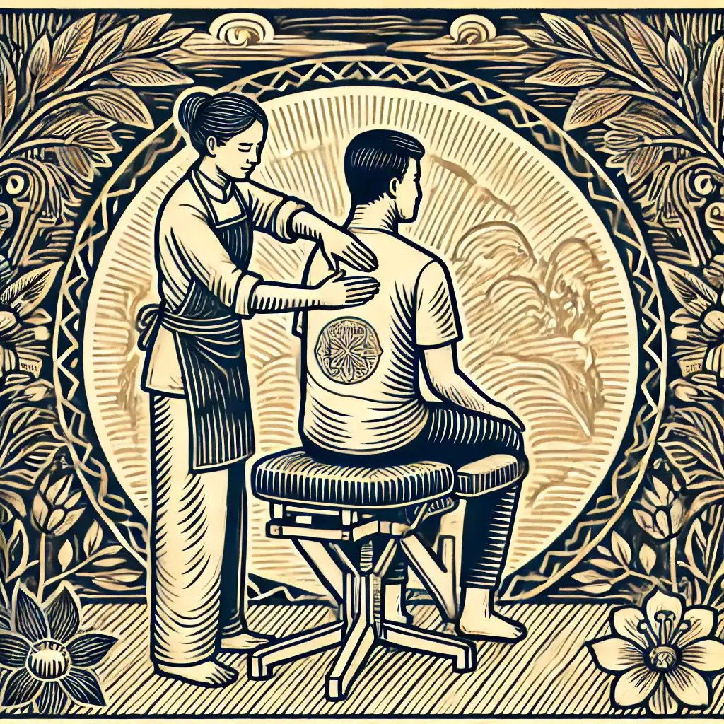 Le Amma Assis est une technique de massage japonaise qui se pratique sur une chaise ergonomique. Le receveur reste habillé et s'assoit confortablement, incliné vers l'avant pour faciliter l'accès au dos, aux épaules, à la tête et aux bras. Nous utilisons principalement nos mains, nos avant bras et nos pouces pour appliquer des pressions rythmiques et des mouvements spécifiques le long des méridiens et des points d'acupuncture.